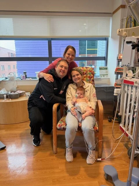 Emma Fuhrman was born in November, 2025 to Maggie and David “Pug” Fuhrman. Despite a healthy pregnancy, labor and delivery, normal newborn screen, and ordinary first weeks of life, Maggie noticed Emma was not moving her extremities or holding her head up as expected. After a week at UPMC Children’s Hospital of Pittsburgh in early January followed by a two-week stint in March, an EMG confirmed Emma’s motor neurons were not functioning. A second round of more detailed genetic test results revealed Emma had a rare genetic version of Spinal Muscular Atrophy (SMA).
