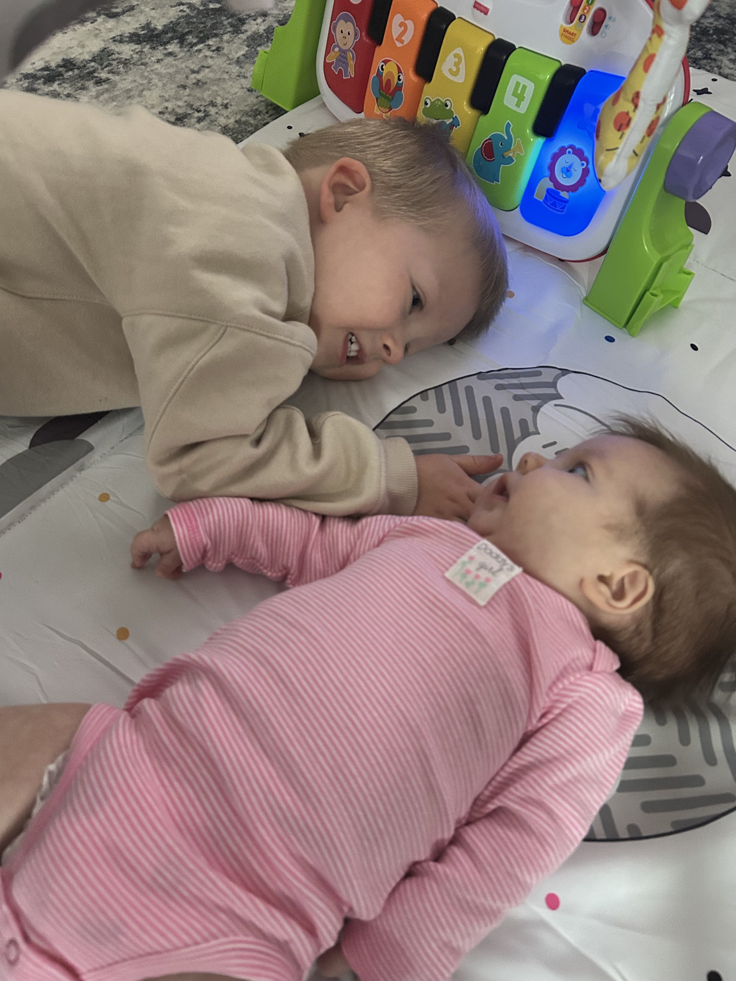 He has bravely walked hospital hallways, seen his sister connected to medical equipment, and tried to make sense of how and why she now eats via her G-tube. While he may not fully understand everything, it is obvious he feels the impact deeply. At times, this has shown through in emotional moments and meltdowns. He is navigating a new normal that is unfair for a toddler to have to go through.